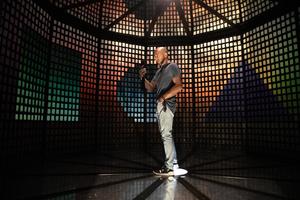 (250418) — BUENOS AIRES, 18 abril, 2025 (Xinhua) — Un hombre se toma una fotografía dentro de la obra inmersiva «El Baptisterio de los Colores» del dúo artístico Mondongo, en el espacio Arthaus, en la ciudad de Buenos Aires, capital de Argentina, el 18 de abril de 2025. (Xinhua/Martín Zabala) (mz) (oa) (ra) (ce)