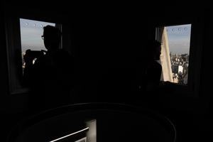(250514) — BUENOS AIRES, 14 mayo, 2025 (Xinhua) — Imagen del 13 de mayo de 2025 de personas observando por la ventanas del mirador de la cúpula del Obelisco durante un recorrido en ascensor por el interior del emblemático monumento, en la ciudad de Buenos Aires, capital de Argentina. El emblemático Obelisco de la ciudad de Buenos Aires, construido en 1936 para recordar el cuarto centenario de la fundación de la capital argentina, renovó recientemente su mirador para que vecinos y turistas puedan disfrutar de vistas únicas y sentir cómo late una urbe cosmopolita. (Xinhua/Martín Zabala) (mz) (ah) (ra) (ce)