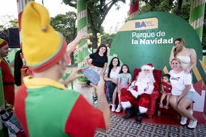 (241220) -- BUENOS AIRES, 20 diciembre, 2024 (Xinhua) -- Imagen del 19 de diciembre de 2024 de una familia tomándose una fotografía con un actor disfrazado de Papá Noel en el Parque de la Navidad en la Plaza Intendente Seeber, en la ciudad de Buenos Aires, Argentina. La magia de la temporada navideña, se vive en la ciudad de Buenos Aires, capital de Argentina, que ha preparado especialmente espacios públicos para que familias, residentes y turistas puedan celebrar el espíritu que impregna a la región durante esta parte del mes de diciembre con Papá Noel, juegos, obras de teatro, mercados, coros y talleres literarios. (Xinhua/Martín Zabala) (mz) (oa) (da) (vf)