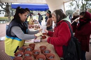 (250710) -- BUENOS AIRES, 10 julio, 2025 (Xinhua) -- Una voluntaria de la comuna 14 asesora y entrega una bolsa con esquejes de rosal a una mujer en el Rosedal del Parque Tres de Febrero, en la ciudad de Buenos Aires, capital de Argentina, el 10 de julio de 2025. La ciudad de Buenos Aires comenzó esta semana la tradicional poda de rosas que realiza cada invierno en el Rosedal del Parque Tres de Febrero, el principal espacio verde de la capital argentina. (Xinhua/Martín Zabala) (mz) (jg) (ah) (ce)