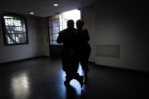 (250905) -- BUENOS AIRES, 5 septiembre, 2025 (Xinhua) -- Imagen del 27 de agosto de 2025 de Su Junqiang (i), y Guo Xingzhu, calentando previo a los cuartos de final de la categoría Tango de Pista, en el Campeonato Mundial de Tango, en Buenos Aires, Argentina. En Buenos Aires, los bailarines de tango chinos Su Junqiang y Guo Xingzhu llevaron su pasión y dedicación al escenario mundial. La pareja, que ganó la competición regional de China en Shanghai a principios de este año, representó a China en el Campeonato Mundial de Tango 2025, avanzando a los cuartos de final y a las semifinales en la categoría "Tango de Pista" y realizando una presentación en la Milonga de Campeones. (Xinhua/Martín Zabala) (oa) (ra) (ce)