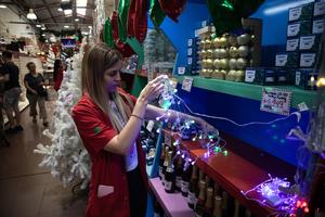 (251217) -- BUENOS AIRES, 17 diciembre, 2025 (Xinhua) -- Imagen del 16 de diciembre de 2025 de una trabajadora acomodando luces de colores en una tienda, en la ciudad de Buenos Aires, capital de Argentina. Con la llegada de la temporada de Navidad en Argentina, las calles comerciales del país vuelven a llenarse de movimiento, colores y figuras vinculados al consumo, una escena que se repite cada año y que combina compras, tradiciones familiares y símbolos compartidos. (Xinhua/Martín Zabala) (mz) (ah) (ra) (vf)