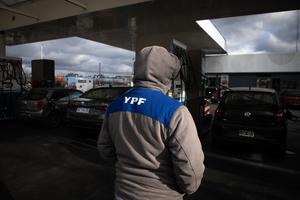 (250630) -- BUENOS AIRES, 30 junio, 2025 (Xinhua) -- Un empleado de la petrolera argentina Yacimientos Petrolíferos Fiscales (YPF) espera por clientes en una estación de servicio, en la ciudad de Buenos Aires, capital de Argentina, el 30 de junio de 2025. El presidente de Argentina, Javier Milei, anunció el lunes que su Gobierno apelará el fallo de la Corte del Distrito Sur de Nueva York, Estados Unidos que ordena al país sudamericano la transferencia del 51 por ciento de las acciones de la semiestatal YPF, como parte del pago por la expropiación de la empresa en 2012. (Xinhua/Martín Zabala) (mz) (rtg) (oa) (vf)
