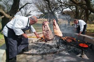 (251030) — LA PAMPA, 30 octubre, 2025 (Xinhua) — Imagen sin fechar cedida por la Secretaría de Turismo de la Provincia de La Pampa de parrilleros cocinando piezas de carne al asador, en la Estancia Nehuen Mapu, en la localidad de Quehué, en la provincia de La Pampa, Argentina. Con la mirada puesta en fortalecer su presencia en el mercado chino, sectores de la provincia argentina de La Pampa participarán este año en una nueva edición de la Exposición Internacional de Importaciones de China (CIIE, según siglas en inglés) con la carne bovina como producto insignia de exportación y emblema de su identidad productiva. (Xinhua/Secretaría de Turismo de la Provincia de La Pampa) (mz) (da) (ra) (ce)