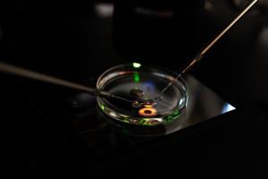 (250502) — PILAR, 2 mayo, 2025 (Xinhua) — Imagen del 24 de abril de 2025 de la bióloga Mariana Suvá realizando una enucleación del ovocito en un microscopio con sistema de micromanipulación en el laboratorio de embriología de la empresa argentina Kheiron Biotech, en la ciudad de Pilar, Argentina. La clonación y la edición genómica amplían las fronteras del potencial deportivo de ejemplares equinos en Argentina, lo que no solo impulsa mejoras generacionales de caballos vinculados a ámbitos como el polo, sino que también potencia las exportaciones del sector biotecnológico del país, según expertos en la materia. (Xinhua/Martín Zabala) (mz) (oa) (ra) (vf)