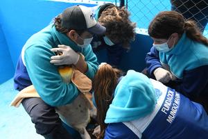 (250413) -- SAN CLEMENTE DEL TUYU, 13 abril, 2025 (Xinhua) -- Imagen proveída por la Fundación Mundo Marino del 24 de agosto de 2024 de trabajadores de la Fundación Mundo Marino atendiendo a un ejemplar de pingüino rey (Aptenodytes patagonicus) rescatado de las playas de Mar del Tuyú, en San Clemente de Tuyu, Argentina. Una fundación ecológica trabaja todos los días en Argentina desde 1987 para el rescate y la rehabilitación de fauna silvestre, una noble tarea que como capítulo más reciente involucró a un pingüino rey que volvió al mar, luego de completar más de seis meses de rehabilitación. (Xinhua/Fundación Mundo Marino) (mz) (oa) (vf)