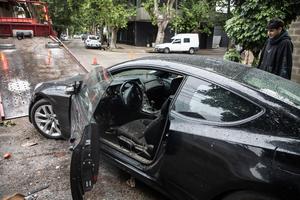 (251025) -- VILLA MAIPU, 25 octubre, 2025 (Xinhua) -- Un hombre observa su automóvil afectado tras un temporal, en la localidad de Villa Maipú, Argentina, el 25 de octubre de 2025. (Xinhua/Martín Zabala) (mz) (oa) (da)