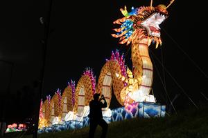 (250927) -- BUENOS AIRES, 27 septiembre, 2025 (Xinhua) -- Imagen del 26 de septiembre de 2025 de un hombre tomando una fotografía de una escultura iluminada durante la feria de luces tradicionales chinas Tianfu Festival, en el predio ferial Tecnópolis, en la localidad de Villa Martelli, en la periferia noroeste de Buenos Aires, Argentina. El reconocido festival de linternas chinas Tianfu, una atractiva experiencia multisensorial basada en la cultura de China, fue inaugurado en Argentina, llenando de luz y color las noches primaverales en el país sudamericano. (Xinhua/Martín Zabala) (mz) (jg) (rtg) (vf)