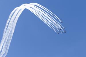 (260418) -- CANBERRA, 18 abril, 2026 (Xinhua) -- El equipo de exhibición de acrobacias aéreas Roulettes de la Real Fuerza Aérea Australiana realiza una presentación durante el Día de Puertas Abiertas del Aeropuerto de Canberra, en Canberra, Australia, el 18 de abril de 2026. (Xinhua/Chu Chen) (oa) (da)