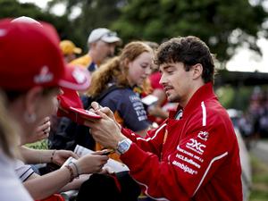(250315) -- MELBOURNE, 15 marzo, 2025 (Xinhua) -- El piloto monegasco de la escudería Ferrari, Charles Leclerc, interactúa con aficionados en el Melbourne Walk previo a la sesión de prácticas del Gran Premio de Australia de Fórmula Uno, en Albert Park, en Melbourne, Australia, el 15 de marzo de 2025. (Xinhua/Ma Ping) (rtg) (da)