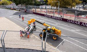 (250315) -- MELBOURNE, 15 marzo, 2025 (Xinhua) -- El monoplaza del piloto británico de la escudería Haas, Oliver Bearman, es levantado durante la sesión de prácticas del Gran Premio de Australia de Fórmula Uno, en Albert Park, en Melbourne, Australia, el 15 de marzo de 2025. (Xinhua/Hu Jingchen) (rtg) (da)
