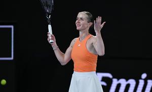 (260127) -- MELBOURNE, 27 enero, 2026 (Xinhua) -- Elina Svitolina reacciona al término del partido de cuartos de final de individuales femeninos entre Coco Gauff, de Estados Unidos, y Elina Svitolina, de Ucrania, en el torneo de tenis Abierto de Australia, en Melbourne, Australia, el 27 de enero de 2026. (Xinhua/Wang Shen) (jg) (ra) (vf)