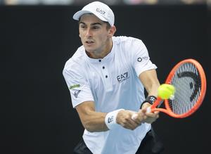(260119) -- MELBOURNE, 19 enero, 2026 (Xinhua) -- Matteo Arnaldi, de Italia, devuelve la pelota durante el partido de primera ronda de individuales masculinos, ante Andrey Rublev, de Rusia, en el torneo de tenis Abierto de Australia, en Melbourne, Australia, el 19 de enero de 2026. (Xinhua/Hu Jingchen) (rtg) (ah) (vf)