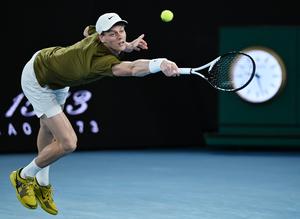 (260130) -- MELBOURNE, 30 enero, 2026 (Xinhua) -- Jannik Sinner devuelve la pelota durante el partido de semifinal de individuales masculinos entre Novak Djokovic, de Serbia, y Jannik Sinner, de Italia, en el torneo de tenis Abierto de Australia, en Melbourne, Australia, el 30 de enero de 2026. (Xinhua/Wang Shen) (oa) (ra)