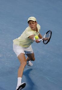 (250124) -- MELBOURNE, 24 enero, 2025 (Xinhua) -- Jannik Sinner devuelve la pelota durante las semifinales de individuales masculinos entre Jannik Sinner, de Italia, y Ben Shelton, de Estados Unidos, en el torneo de tenis Abierto de Australia, en Melbourne, Australia, el 24 de enero de 2025. (Xinhua/Ma Ping) (oa) (ra) (ce)