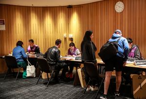 (250503) -- SIDNEY, 3 mayo, 2025 (Xinhua) -- Ciudadanos se registran en un centro de votación de las elecciones federales de Australia, en Sídney, Australia, el 3 de mayo de 2025. El día de las elecciones en Australia ha llegado y se espera que millones de electores emitan sus votos para decidir la composición del 48° Parlamento federal. (Xinhua/Ma Ping) (jg) (da)