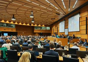 (250910) -- VIENA, 10 septiembre, 2025 (Xinhua) -- Imagen del 10 de septiembre de 2025 de una vista de la reunión de la Junta de Gobernadores del Organismo Internacional de Energía Atómica (OIEA), en Viena, Austria. China se opone de forma explícita a la decisión de Francia, Reino Unido y Alemania (E3) de utilizar el mecanismo de restablecimiento automático (snapback) para reactivar las sanciones contra Irán y pide realizar más esfuerzos diplomáticos en la cuestión nuclear iraní, dijo el miércoles Li Song, representante permanente de China ante el OIEA. (Xinhua/Misión Permanente de China ante la ONU y otras Organizaciones Internacionales en Viena) (jg) (da) (ce)