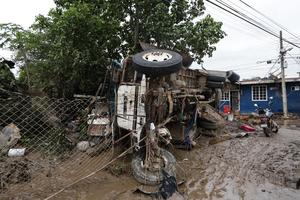 (251011) -- POZA RICA, 11 octubre, 2025 (Xinhua) -- Imagen del 11 de octubre de 2025 de un vehículo dañado por las lluvias, en la ciudad de Poza Rica, en el estado de Veracruz, México. A 37 subió el número de muertos por las intensas lluvias registradas en los últimos días en el centro y oriente de México, informó el sábado la gubernamental Coordinación Nacional de Protección Civil. (Xinhua/Francisco Cañedo) (fc) (ra) (da)