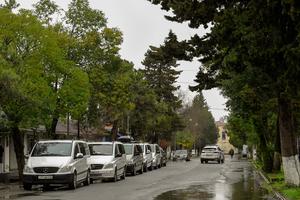 (260303) -- ASTARA, 3 marzo, 2026 (Xinhua) -- Imagen del 2 de marzo de 2026 de vehículos de pasajeros estacionados cerca del cruce fronterizo de Astara, en el sur de Azerbaiyán, listos para transportar a los evacuados de Irán a Bakú, capital de Azerbaiyán. En días recientes, el cruce fronterizo de Astara, en la frontera sur de Azerbaiyán con Irán, se ha convertido en una importante ruta terrestre para los evacuados de Irán. (Xinhua/Chen Junfeng) (ah) (ra) (ce)