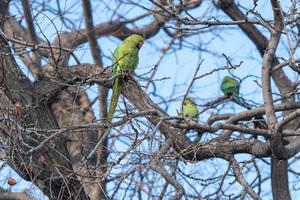 (260317) -- BAKU, 17 marzo, 2026 (Xinhua) -- Imagen del 16 de marzo de 2026 de cotorras de Kramer vistas en un árbol en el Bulevar Costero, en Bakú, Azerbaiyán. (Xinhua/Chen Junfeng) (jg) (ra) (ce)