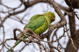 (260317) -- BAKU, 17 marzo, 2026 (Xinhua) -- Imagen del 16 de marzo de 2026 de una cotorra de Kramer posándose sobre la rama de un árbol en el Bulevar Costero, en Bakú, Azerbaiyán. (Xinhua/Chen Junfeng) (jg) (ra) (ce)