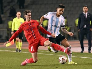 (250124) -- BAKU, 24 enero, 2025 (Xinhua) -- Imagen del 23 de enero de 2025 de David Miculescu (i), de FCSB, disputando el balón con Matheus Silva, de Qarabag, durante el partido de la Europa League de la UEFA entre Qarabag y FCSB, en Bakú, Azerbaiyán. (Xinhua/Tofik Babayev) (jg) (da) (ce)