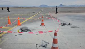 (260305) -- BAKU, 5 marzo, 2026 (Xinhua) -- Imagen tomada con un teléfono móvil de restos de un dron en el Aeropuerto Internacional de Najicheván, en la República Autónoma de Najicheván, el 5 de marzo de 2026. El Ministerio de Asuntos Exteriores de Azerbaiyán condenó enérgicamente el jueves los ataques con dron contra la República Autónoma de Najicheván, lanzados desde territorio iraní, calificándolos de "violación de las normas y principios del derecho internacional". Los ataques ocurrieron alrededor del mediodía del jueves. (Xinhua/Agencia Estatal de Noticias de Azerbaiyán) (da) (ah) (vf)