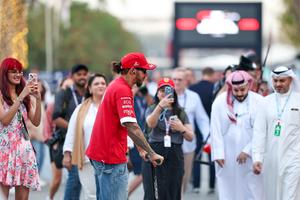 (250412) -- SAKHIR, 12 abril, 2025 (Xinhua) -- Imagen del 11 de abril de 2025 del piloto británico de la escudería Ferrari, Lewis Hamilton (frente), visto en el paddock previo a la segunda sesión de prácticas libres del Gran Premio de Bahréin de Fórmula Uno en el Circuito Internacional de Bahréin, en Sakhir, Bahréin. (Xinhua/Qian Jun) (rtg) (da)