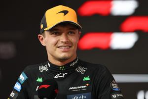 (250412) -- SAKHIR, 12 abril, 2025 (Xinhua) -- Imagen del 11 de abril de 2025 del piloto británico de la escudería McLaren, Lando Norris, siendo entrevistado al término de la segunda sesión de prácticas libres del Gran Premio de Bahréin de Fórmula Uno, en el Circuito Internacional de Bahréin, en Sakhir, Bahréin. (Xinhua/Qian Jun) (rtg) (da)