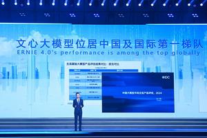 (241119) -- TONGXIANG, Nov. 19, 2024 (Xinhua) -- The Big Model Ernie is introduced at the award ceremony of World Internet Conference (WIC) Awards for Pioneering Science and Technology on the sidelines of the WIC Wuzhen Summit in Wuzhen, east China's Zhejiang Province, Nov. 19, 2024. A total of 20 projects on Tuesday received the WIC Awards for Pioneering Science and Technology in Wuzhen. The projects -- all deemed to have international significance -- cover cutting-edge areas such as brain-inspired computing, embodied intelligence and the 6G network, and were divided into three groups namely basic research, key technology, and research and development. (Xinhua/Huang Zongzhi)