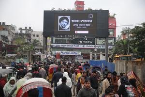 (251230) -- DHAKA, 30 diciembre, 2025 (Xinhua) -- Una valla publicitaria con el retrato de la ex primera ministra de Bangladesh, Khaleda Zia, es vista frente al hospital Evercare, en Dhaka, Bangladesh, el 30 de diciembre de 2025. Khaleda Zia, también presidenta del Partido Nacionalista de Bangladesh (PNB), falleció por enfermedad a los 80 años de edad en Dhaka, la capital del país, alrededor de las 6 a.m. hora local del martes, informó en sus redes sociales el PNB. El Gobierno interino de Bangladesh ha declarado tres días de luto estatal de miércoles a viernes tras la muerte de Zia. (Xinhua/Habibur Rahman) (oa) (ah) (vf)