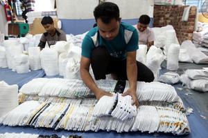 (250317) -- DHAKA, 17 marzo, 2025 (Xinhua) -- Trabajadores acomodan gorros de oración en una fábrica previo al Eid-al-Fitr, en Dhaka, Bangladesh, el 17 de marzo de 2025. (Xinhua/Habibur Rahman) (rtg) (ah) (vf)