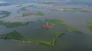 (251026) -- DHAKA, 26 octubre, 2025 (Xinhua) -- Vista aérea tomada con un dron el 25 de octubre de 2025 de algunas ladrilleras semisumergidas por las inundaciones, en Dhaka, Bangladesh. Las fuertes lluvias y la crecida de los ríos han sumergido zonas bajas alrededor de la capital, incluidas algunas ladrilleras. (Xinhua/Habibur Rahman) (rtg) (ah)