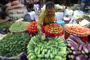 (250228) -- DHAKA, 28 febrero, 2025 (Xinhua) -- Imagen del 27 de febrero de 2025 de un vendedor acomodando verduras en preparación para el mes sagrado del Ramadán en un mercado local, en Dhaka, Bangladesh. (Xinhua/Habibur Rahman) (jg) (da) (ce)