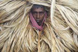 (250822) -- MANIKGANJ, 22 agosto, 2025 (Xinhua) -- Imagen del 20 de agosto de 2025 de un trabajador transportando yute en un mercado de yute, en Manikganj, Bangladesh. (Xinhua/Habibur Rahman) (jg) (da) (ce)