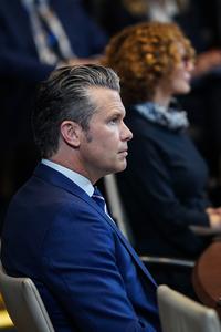 (251016) -- BRUSELAS, 16 octubre, 2025 (Xinhua) -- Imagen del 15 de octubre de 2025 del secretario de Defensa estadounidense, Pete Hegseth, asistiendo a la reunión de ministros de Defensa de la Organización del Tratado del Atlántico Norte, en Bruselas, Bélgica. El avión que transportaba a Hegseth aterrizó el miércoles por la noche en un aeropuerto militar de Reino Unido después de declarar una emergencia, indicó la plataforma de vigilancia de aeronaves ADS-B Exchange. (Xinhua/Peng Ziyang) (rtg) (ra) (ce)