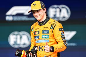 (250726) -- STAVELOT, 26 julio, 2025 (Xinhua) -- Imagen del 25 de julio de 2025 del piloto australiano de la escudería McLaren, Oscar Piastri, festejando con el premio de la pole position al término de la clasificación para el esprint del Gran Premio de Bélgica de Fórmula Uno, en el circuito de Spa-Francorchamps, en Stavelot, Bélgica. (Xinhua/Qian Jun) (rtg) (da)