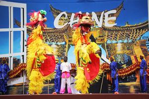 (250129) -- COTONU, 29 enero, 2025 (Xinhua) -- Imagen del 25 de enero de 2025 de artistas presentando la danza del león durante una gala de la Fiesta de la Primavera en el Centro Cultural Chino, en Cotonú, Benín. Las celebraciones del "Feliz Año Nuevo Chino" 2025 comenzaron aquí recientemente, y durarán hasta el 12 de febrero. (Xinhua/Seraphin Zounyekpe) (jg) (da) (ce)