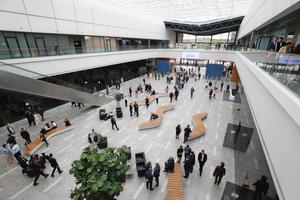 (250627) -- MINSK, 27 junio, 2025 (Xinhua) -- Imagen del 26 de junio de 2025 de participantes del Foro Económico Euroasiático conversando en el interior del Centro Internacional de Exposiciones de Minsk, en Minsk, Bielorrusia. El cuarto Foro Económico Euroasiático comenzó aquí el jueves para impulsar la cooperación dentro de la Unión Económica Euroasiática (UEE). Bielorrusia, que ostenta la presidencia de la UEE en 2025, acoge el foro junto con la reunión del Consejo Supremo Económico Euroasiático, donde se reúnen los jefes de Estado de los países miembros de la UEE. (Xinhua/Henadz Zhinkov) (jg) (da) (vf)