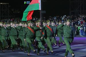 (250503) — MINSK, 3 mayo, 2025 (Xinhua) — Imagen del 2 de mayo de 2025 de soldados marchando durante un ensayo para el desfile militar del Día de la Victoria, en Minsk, capital de Bielorrusia. (Xinhua/Henadz Zhinkov) (oa) (da)