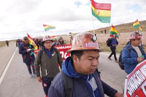 (260103) -- CALAMARCA, 3 enero, 2026 (Xinhua) -- Personas participan en la marcha "Bolivia no se vende" convocada por la Central Obrera Boliviana para exigir la abrogación del Decreto Supremo 5503, en la carretera La Paz-Oruro, en Calamarca, Bolivia, el 3 de enero de 2025. (Xinhua/Javier Mamani) (jm) (oa) (ra) (ce)