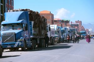 (250603) -- EL ALTO, 3 junio, 2025 (Xinhua) -- Camiones esperan en fila para cargar combustible en una calle, en la ciudad de El Alto, Bolivia, el 3 junio de 2025. Los bloqueos de carreteras encabezados por sectores afines al exmandatario boliviano Evo Morales y por organizaciones vecinales que se oponen a la gestión del actual presidente de Bolivia, Luis Arce, se intensificaron el martes en el país. (Xinhua/Javier Mamani) (jm) (oa) (ra) (vf)