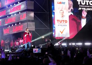 (251016) -- LA PAZ, 16 octubre, 2025 (Xinhua) -- Imagen del 15 de octubre de 2025 del candidato a la Presidencia de Bolivia por el partido Alianza Libre, Jorge "Tuto" Quiroga (frente), hablando ante sus simpatizantes durante el cierre de campaña llevado a cabo en la Plaza Villarroel, en la ciudad de La Paz, Bolivia. El país sudamericano se prepara para una cita histórica el próximo 19 de octubre, cuando elegirá por primera vez en segunda vuelta al presidente y vicepresidente que gobernarán hasta 2030, tras una primera vuelta donde ya se definieron los diputados y senadores. (Xinhua/Javier Mamani) (jm) (jg) (ah) (ce)