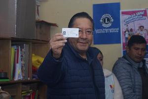 (251019) -- LA PAZ, 19 octubre, 2025 (Xinhua) -- El presidente boliviano, Luis Arce, se prepara para emitir su voto en un colegio electoral, en la ciudad de La Paz, Bolivia, el 19 de octubre de 2025. Bolivia abrió el domingo a las 08:00 hora local las mesas de sufragio para iniciar la votación en la histórica segunda vuelta presidencial con el fin de elegir a sus nuevos gobernantes, con ocho horas de votación y 7.567.207 de ciudadanos habilitados en el país y 369.931 en 22 naciones en el exterior. (Xinhua/Javier Mamani) (jm) (ah) (da)