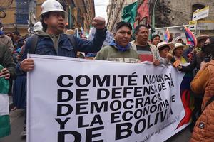 (250526) -- LA PAZ, 26 mayo, 2025 (Xinhua) -- Personas participan en una marcha en contra del presidente boliviano, Luis Arce, en La Paz, Bolivia, el 26 de mayo de 2025. Arce advirtió el lunes sobre el surgimiento de "nuevas expresiones antinacionales" que intentan dividir al país, generar conflictos internos y sabotear la gestión gubernamental. (Xinhua/Javier Mamani) (jm) (rtg) (ah) (vf)