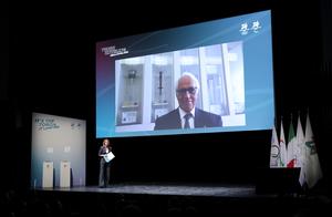 (250415) -- MILAN, 15 abril, 2025 (Xinhua) -- Imagen del 14 de abril de 2025 de Giovanni Malago, presidente de Milano Cortina 2026, hablando a través de un enlace de video durante la ceremonia de develación de las antorchas de los Juegos Olímpicos y Paralímpicos de Invierno Milano Cortina 2026, en Milán, Italia. (Xinhua/Li Jing) (oa) (ah) (vf)