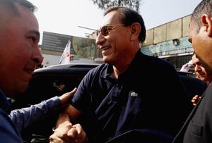(250904) -- LIMA, 4 septiembre, 2025 (Xinhua) -- El expresidente peruano, Martín Vizcarra (c), saluda a simpatizantes después de su excarcelación, en el exterior del penal de Barbadillo, en Lima, Perú, el 4 de septiembre de 2025. El Poder Judicial de Perú ordenó el miércoles la "inmediata excarcelación" del expresidente peruano Martín Vizcarra (2018-2020), quien se encontraba detenido preliminarmente en el penal de Barbadillo en el marco de una investigación fiscal por los presuntos sobornos recibidos cuando fue gobernador de la región Moquegua (2011-2014). (Xinhua/Mariana Bazo) (mb) (rtg) (ra) (ce)