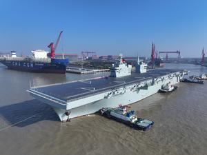 (251114) -- SHANGHAI, 14 noviembre, 2025 (Xinhua) -- El "Sichuan", primer buque de asalto anfibio Tipo 076 de China, zarpa desde el puerto de Hudong-Zhonghua Shipbuilding (Group) Co., Ltd., en Shanghai, en el este de China, el 14 de noviembre de 2025. El Sichuan zarpó el viernes por la mañana desde la metrópoli oriental de Shanghai para llevar a cabo su primera misión de prueba de navegación. El ensayo marítimo se centrará en la prueba y la verificación de la fiabilidad y la estabilidad de los sistemas de propulsión y eléctrico, entre otros. (Xinhua/Zhang Liang) (jg) (da)