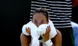 (250701) -- LONDRES, 1 julio, 2025 (Xinhua) -- Zheng Qinwen reacciona durante el partido de primera ronda de individuales femeninos entre Zheng Qinwen, de China, y Katerina Siniakova, de República Checa, en el Campeonato de Tenis de Wimbledon, en Londres, Reino Unido, el 1 de julio de 2025. (Xinhua/Li Ying) (oa) (ra) (ce)