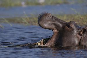 (250523) -- GABORONE, 23 mayo, 2025 (Xinhua) -- Imagen del 8 de mayo de 2025 de un hipopótamo en el Parque Nacional de Chobe, en el distrito de Chobe de Botsuana. Botsuana celebró el jueves el Día Internacional de la Diversidad Biológica en Maun para priorizar la conservación de la biodiversidad en el uso de la tierra y la planificación espacial. (Xinhua/Metlha Ngubevana) (rtg) (ra) (ce)